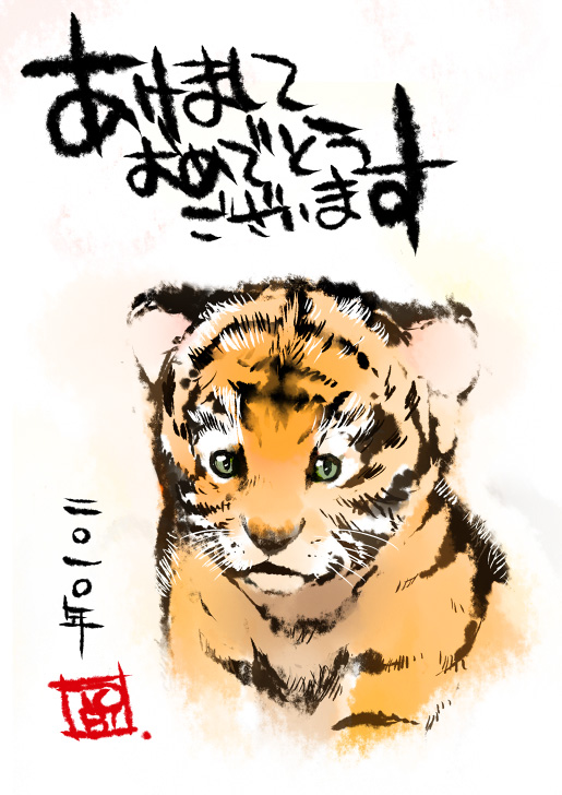 どう考えても虎はそのままのほうが可愛いかったので、虎の赤ちゃんを描きました。